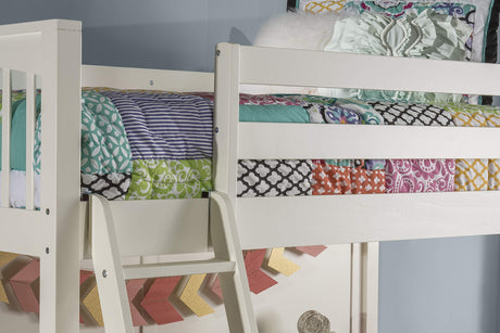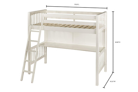 Junior Low Loft Bed with Stairs, White Wood Loft Bed Full Size for Adults, Kids and Young