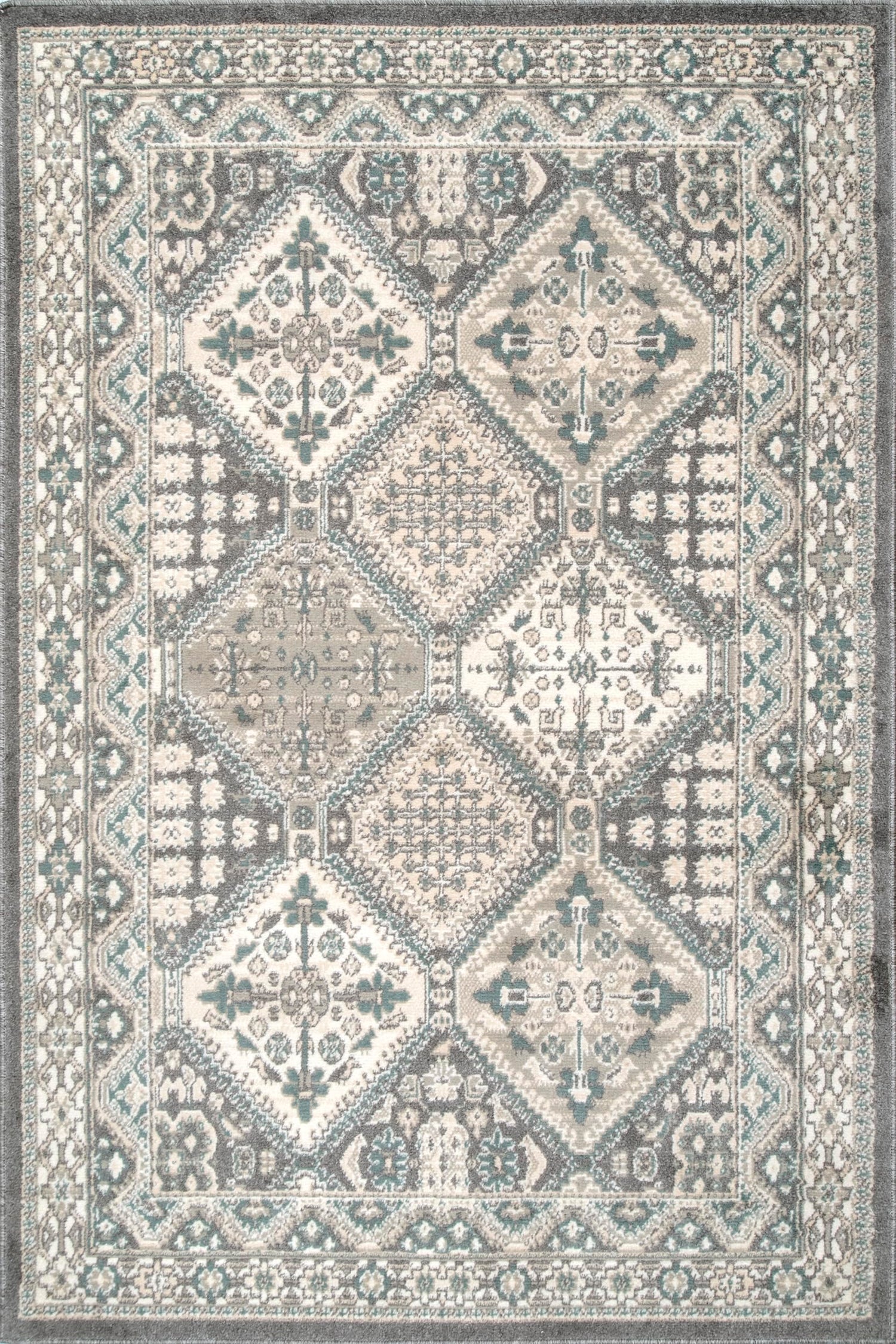 9x12 Becca Traditional Tiled Area Rug - Charcoal Faded Transitional Design