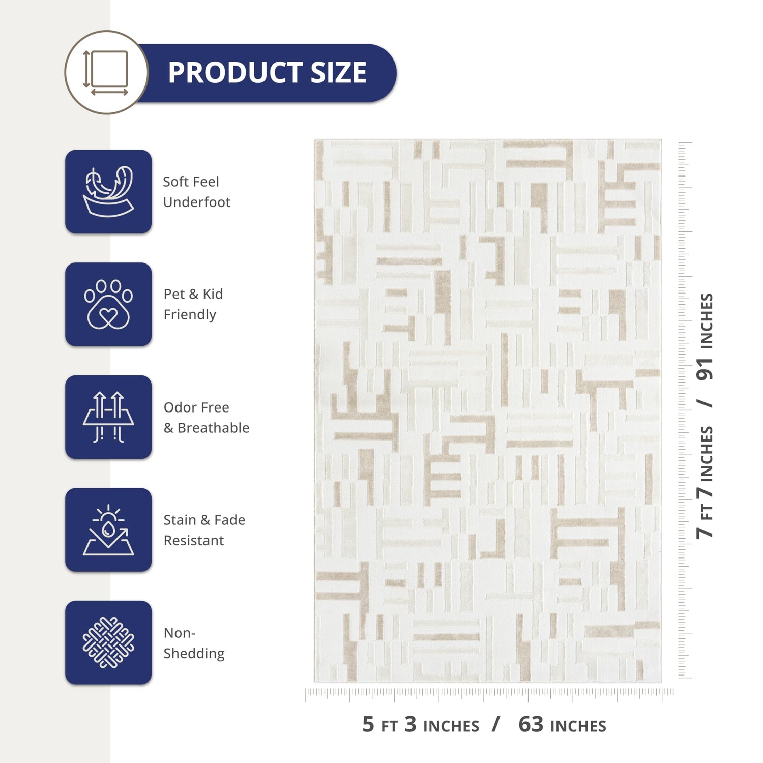 Beige Geometric Area Rug 5x8 - Maze Design | Stain Resistant & Pet-Friendly – Bircata