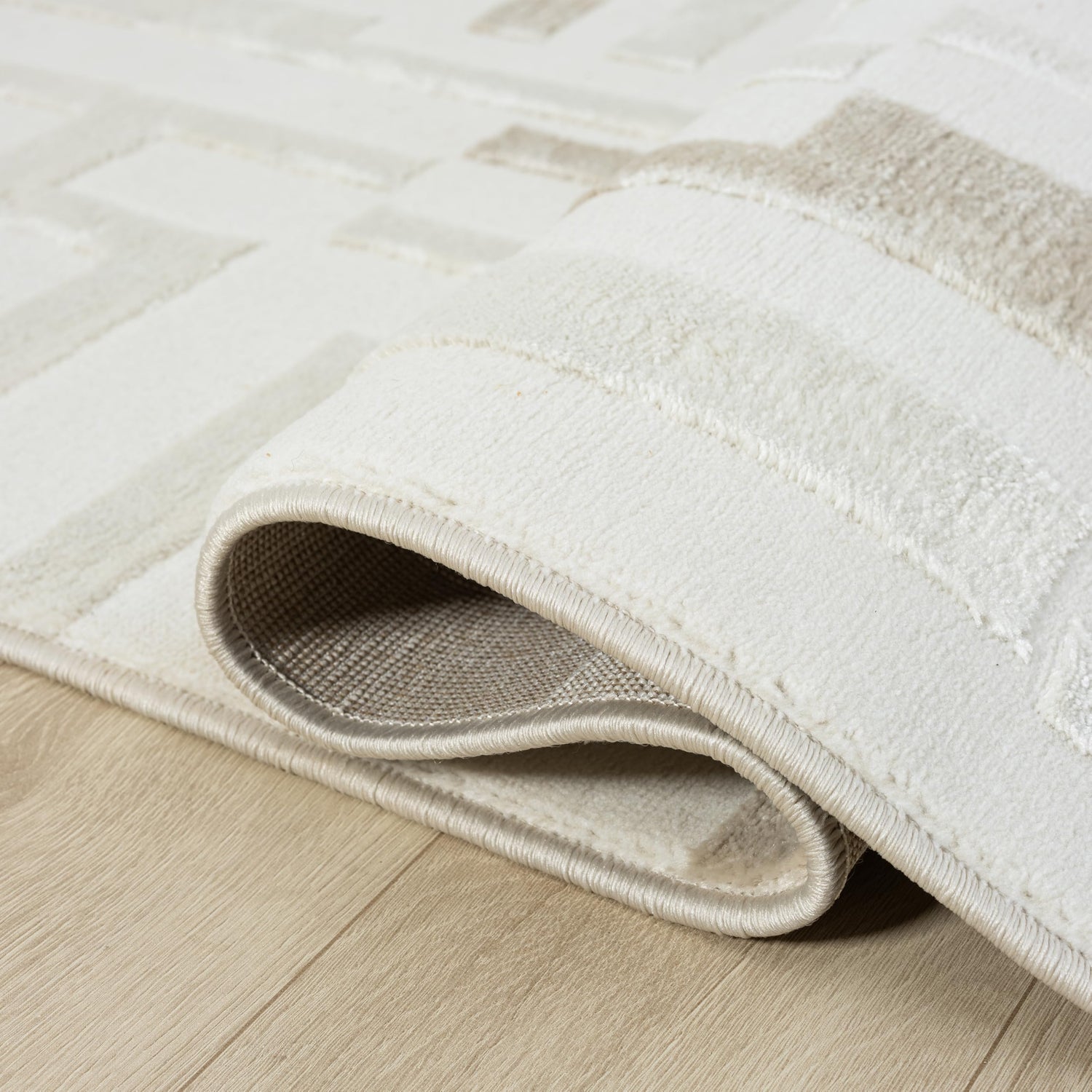 Transform your living space with this sophisticated beige area rug featuring a modern geometric maze design. Expertly crafted for both style and durability, this premium rug brings warmth and elegance to any room.