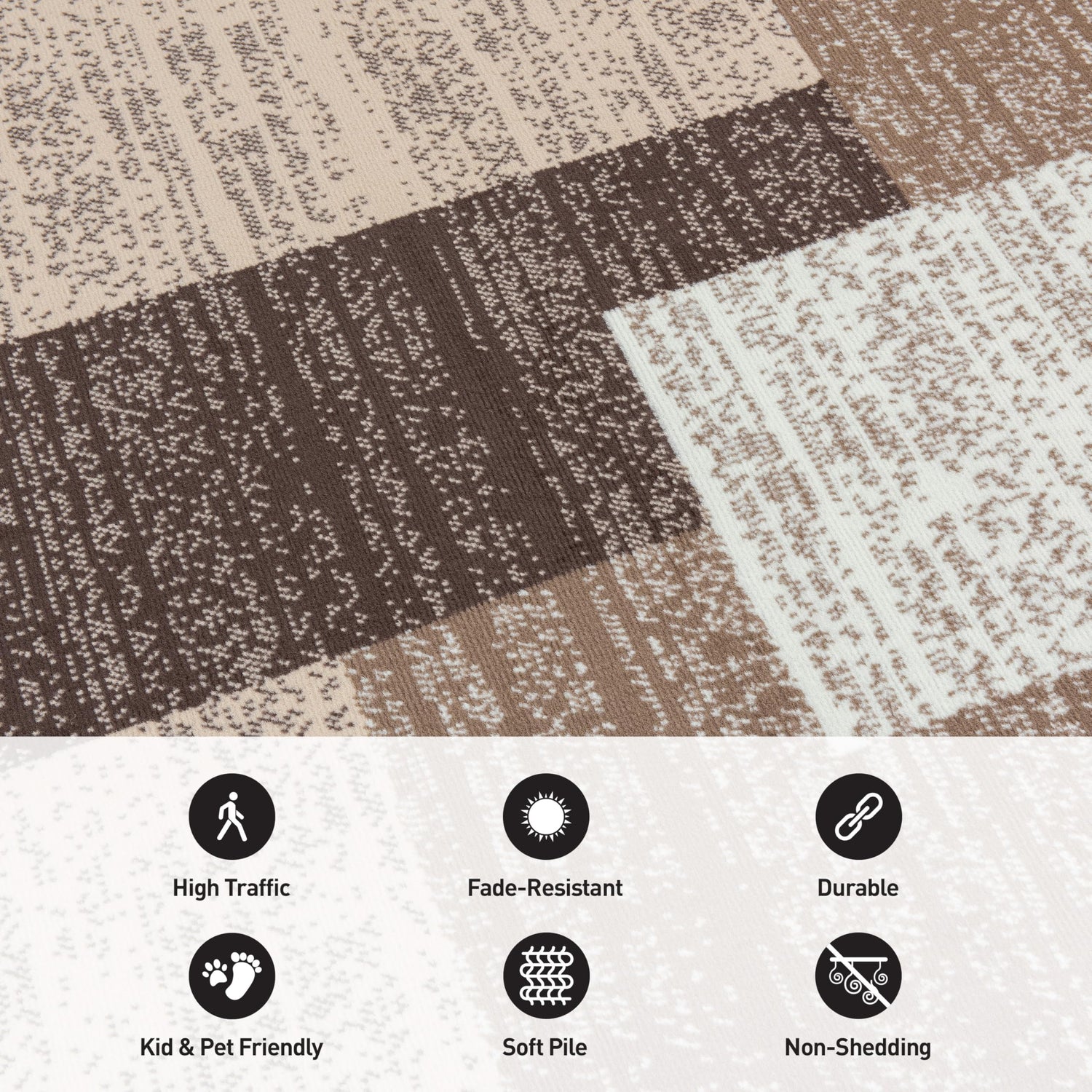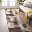 Transform your living space with this contemporary geometric box design area rug that perfectly balances modern style with exceptional durability. Featuring a sophisticated distressed pattern in warm brown tones, this premium polypropylene rug brings both visual interest and practical functionality to any room.