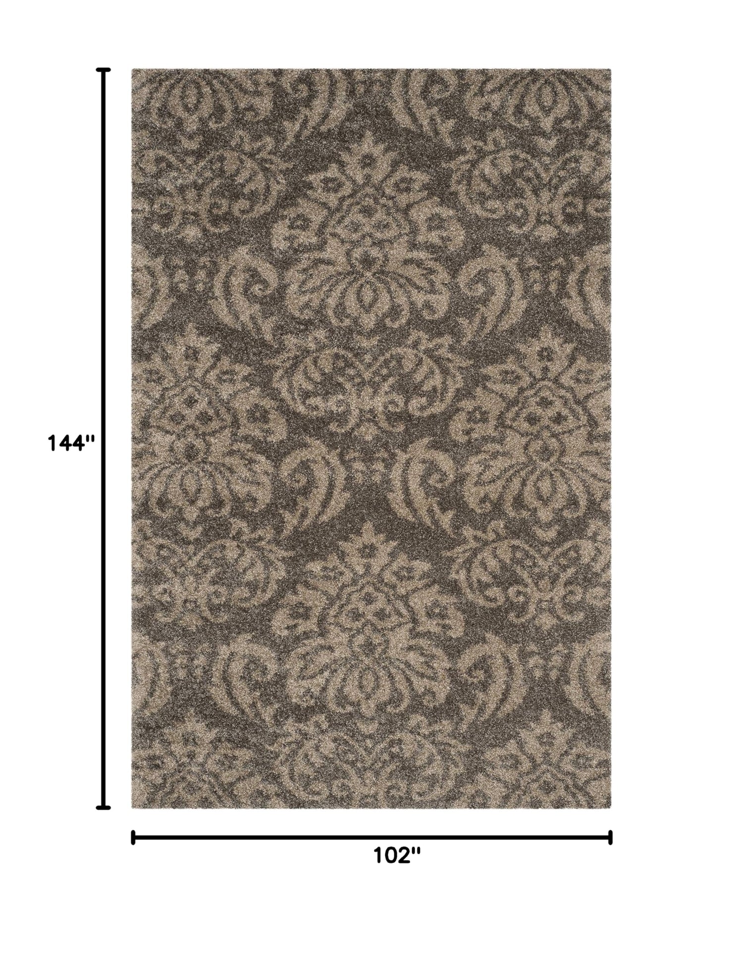 Florida Shag Area Rug 8'6" x 12' - Smoke & Beige Damask