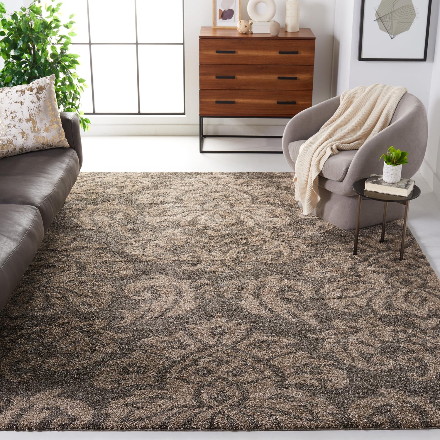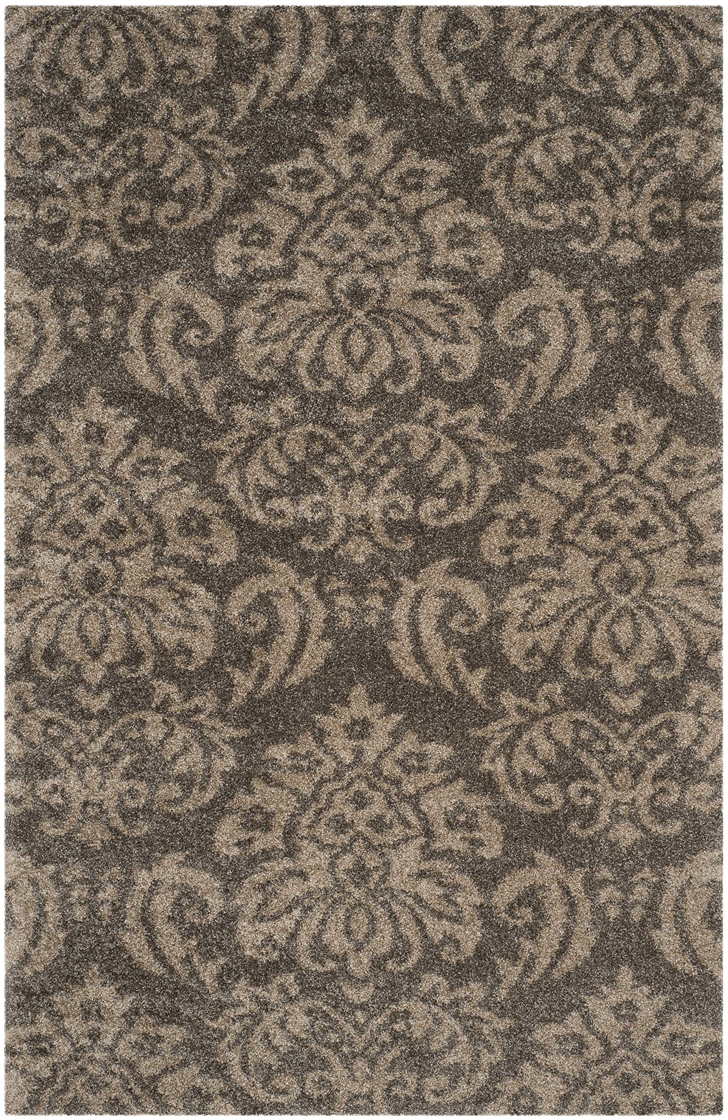 Transform your living space with this luxurious Florida Shag area rug, featuring an elegant damask floral design in sophisticated smoke and beige tones. The sculpted high-low pile creates beautiful depth and dimension, making it the perfect centerpiece for modern or transitional interiors.
