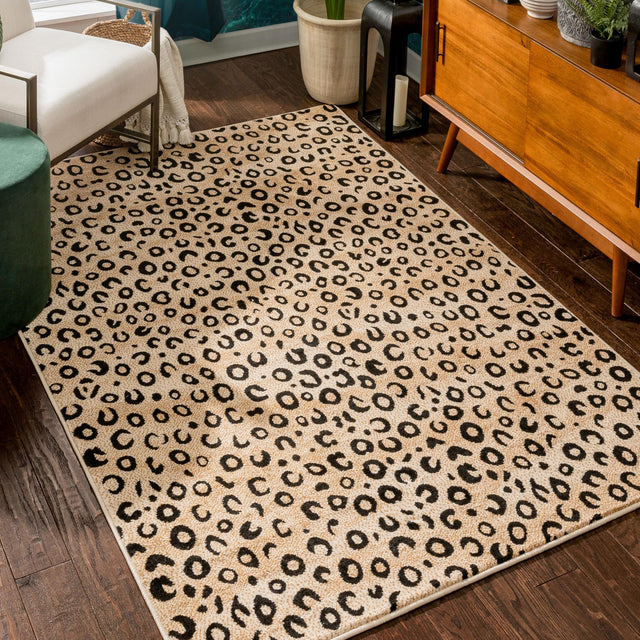 Dulcet Leopard Black Ivory Animal Print Area Rug 7'10" x 9'10"