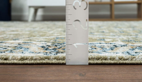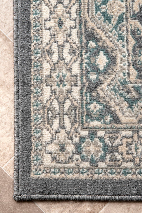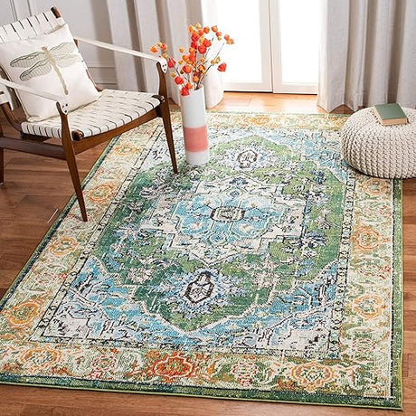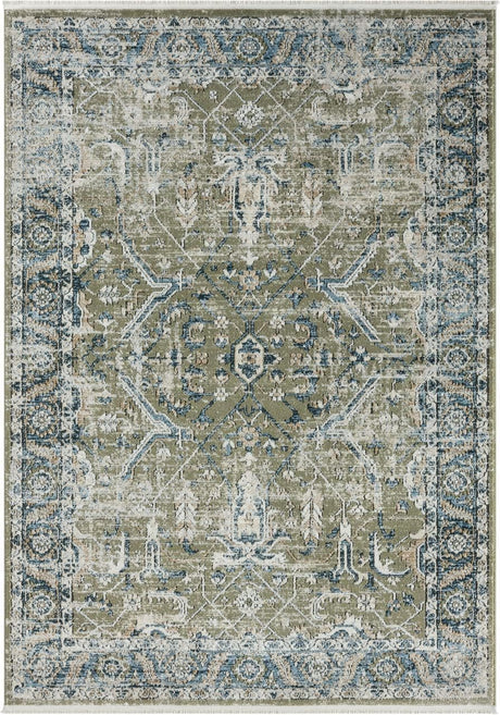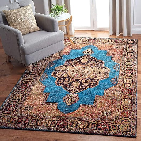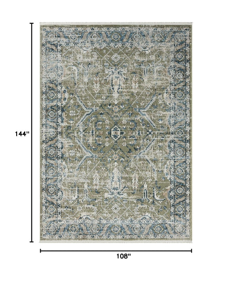 Vintage Blue Green Area Rug 9x12 - Non-Shedding Medium Pile