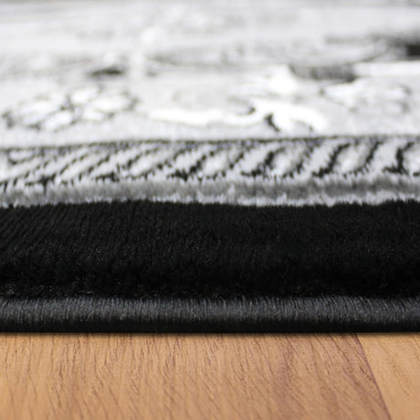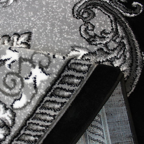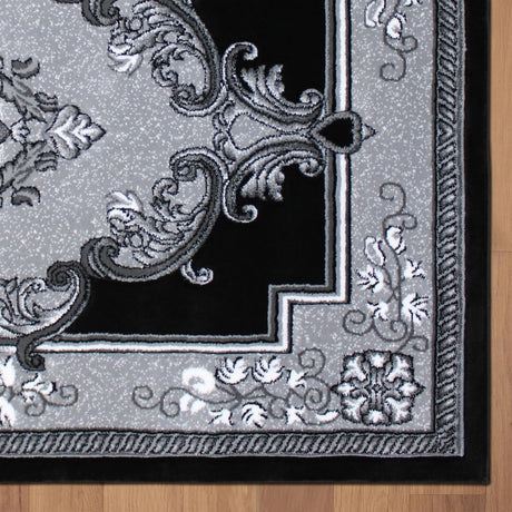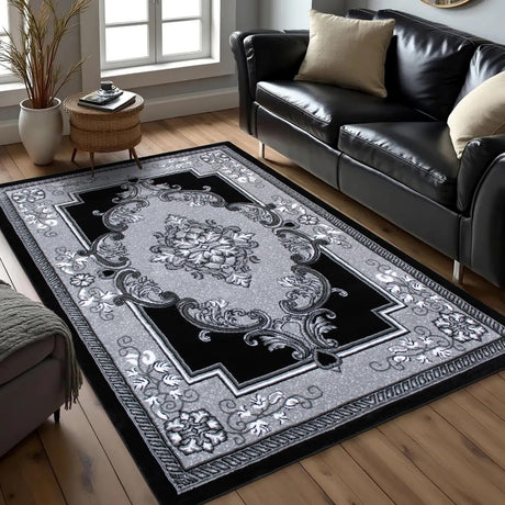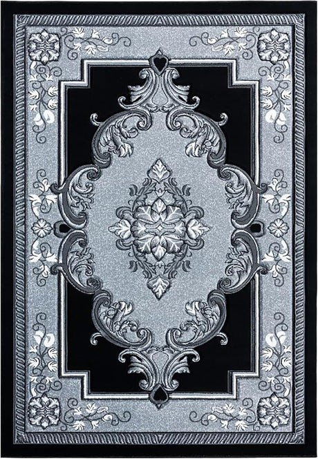 Traditional Hand-Carved Area Rug 5x7 - Black & Grey Floral Medallion