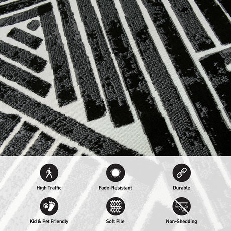Contemporary Stripe Area Rug 7'10" x 10' Black