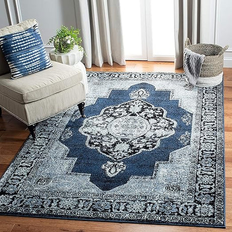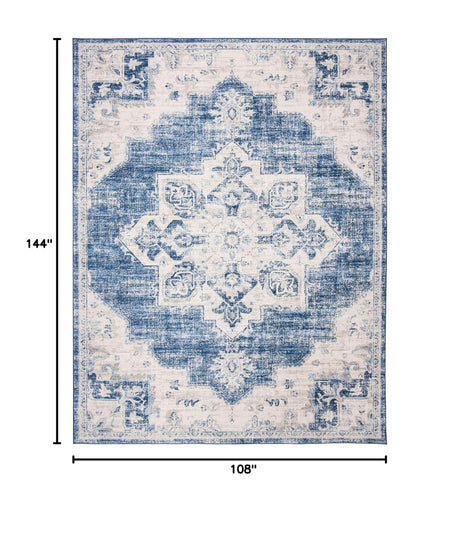 Brentwood Medallion Area Rug 9' x 12' - Ivory & Navy Distressed Design