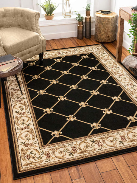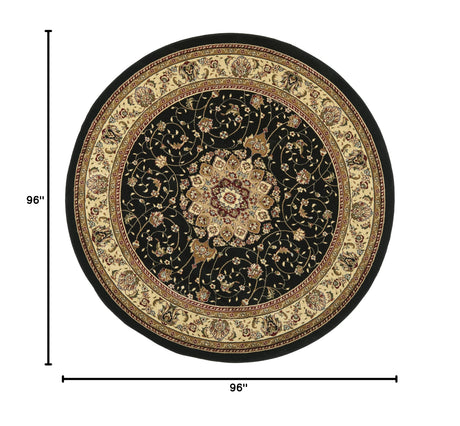 Lyndhurst Traditional Oriental Area Rug - 8' Round Black & Ivory