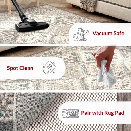 9x12 Vintage Boho Area Rug - Ultra Soft Washable Faux Wool Carpet
