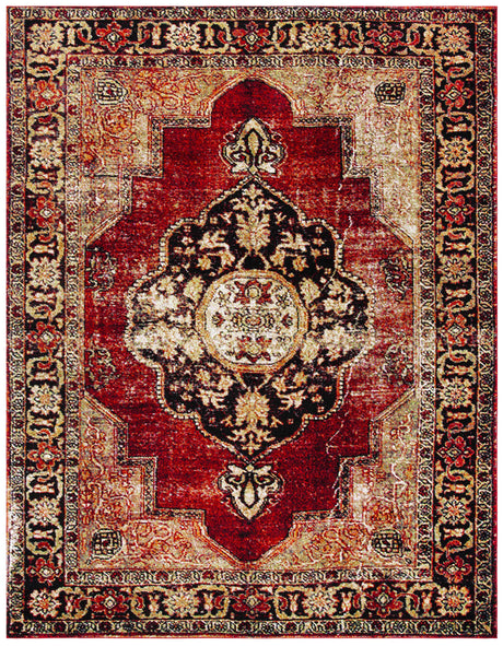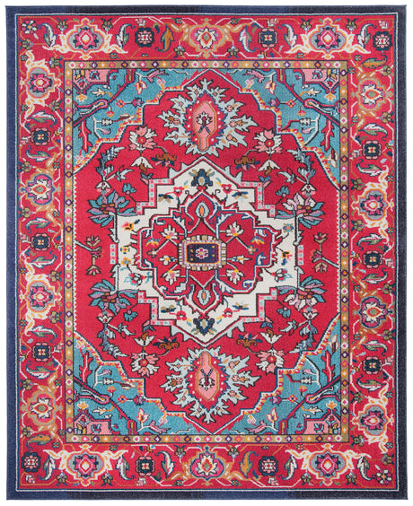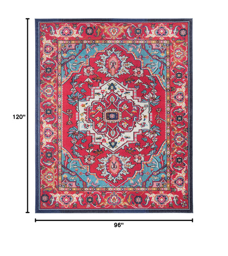 Monaco Collection Area Rug - 8' x 10' Red & Turquoise Boho Oriental Medallion