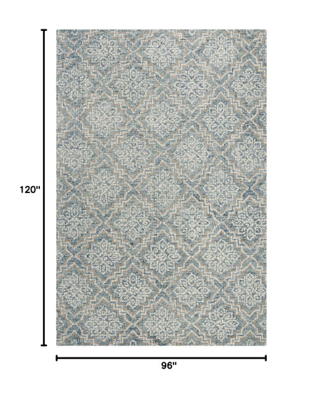 8x10 Abstract Area Rug - Handmade Wool in Blue & Grey