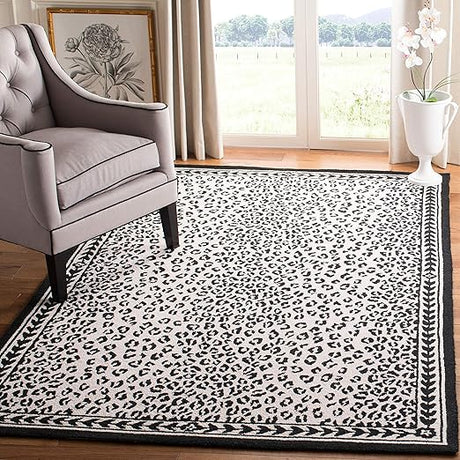 Hand-Hooked Wool Area Rug 6' x 9' - Black & Brown Leopard Print French Country Style