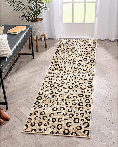 Dulcet Leopard Black Ivory Animal Print Area Rug 7'10" x 9'10"