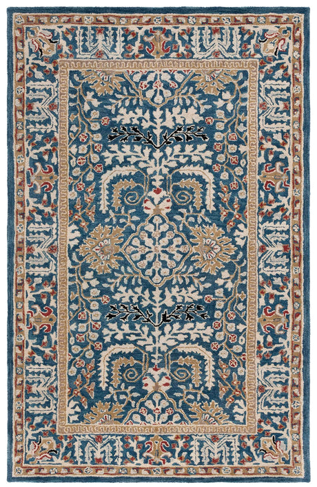 Boho Vintage Blue Multi 8' Round Area Rug - Medallion Floral Design