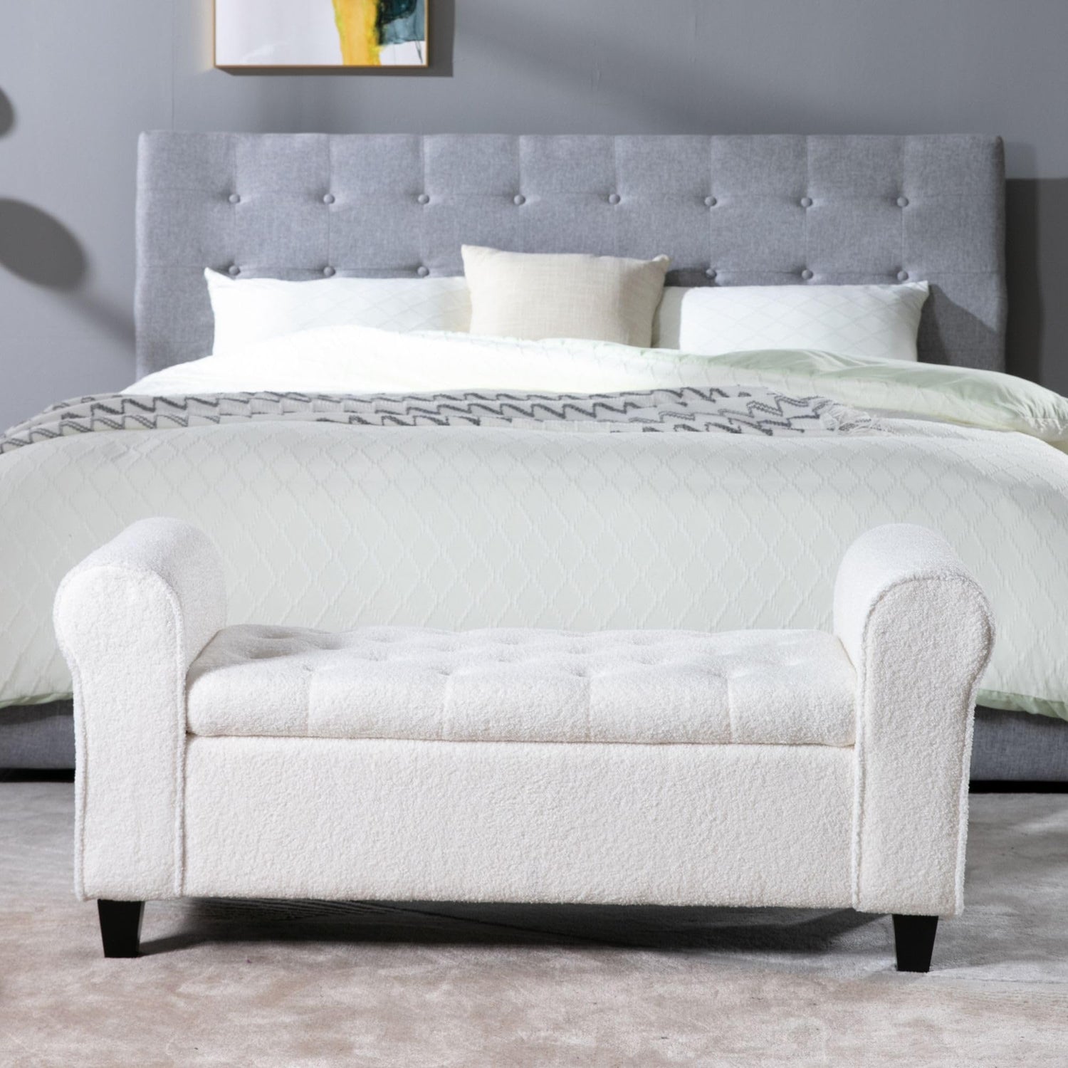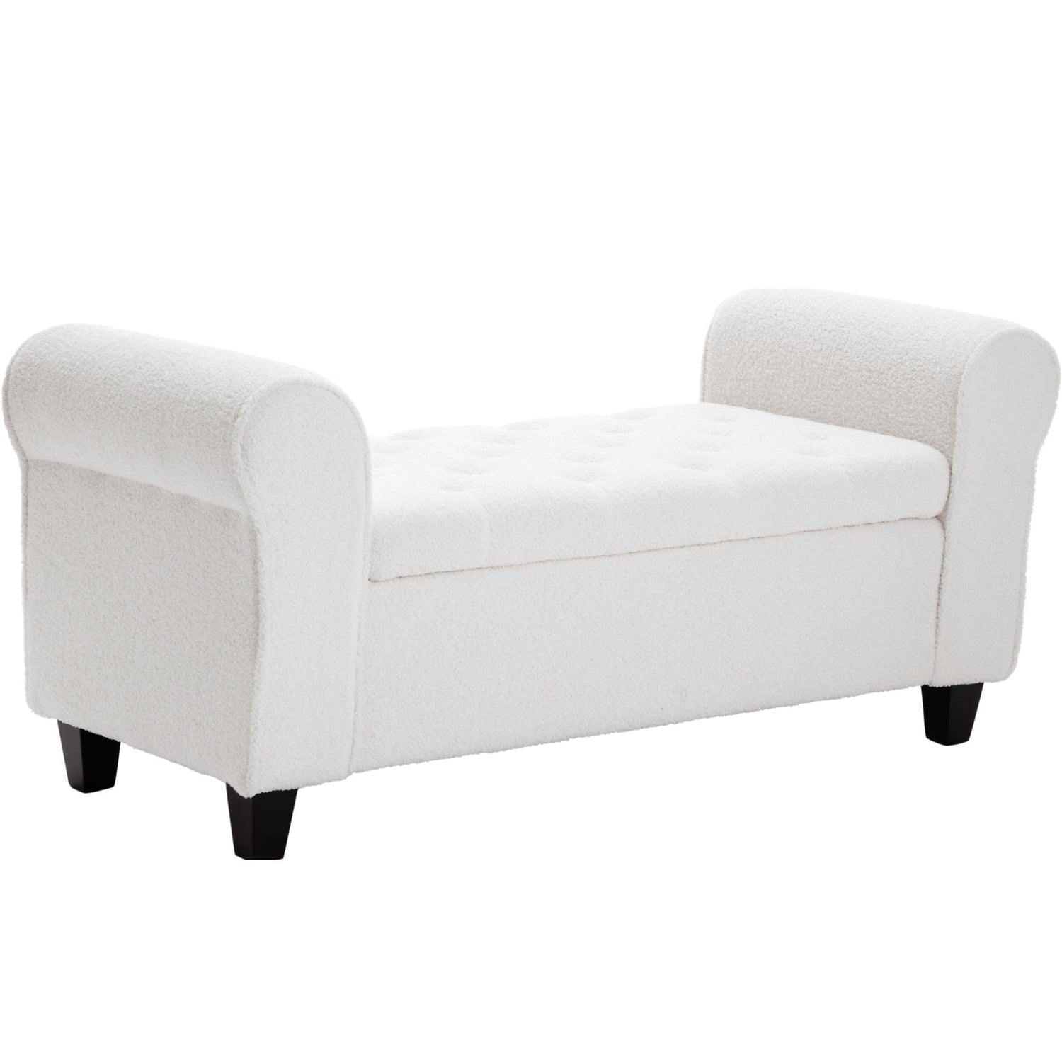 DM Furniture Sherpa Storage Ottoman Upholstered End of Bed Boucle Benches with Seating Comfy Flip Top Window Seat Couch for Bedroom/Entryway/Living Room, 48", White