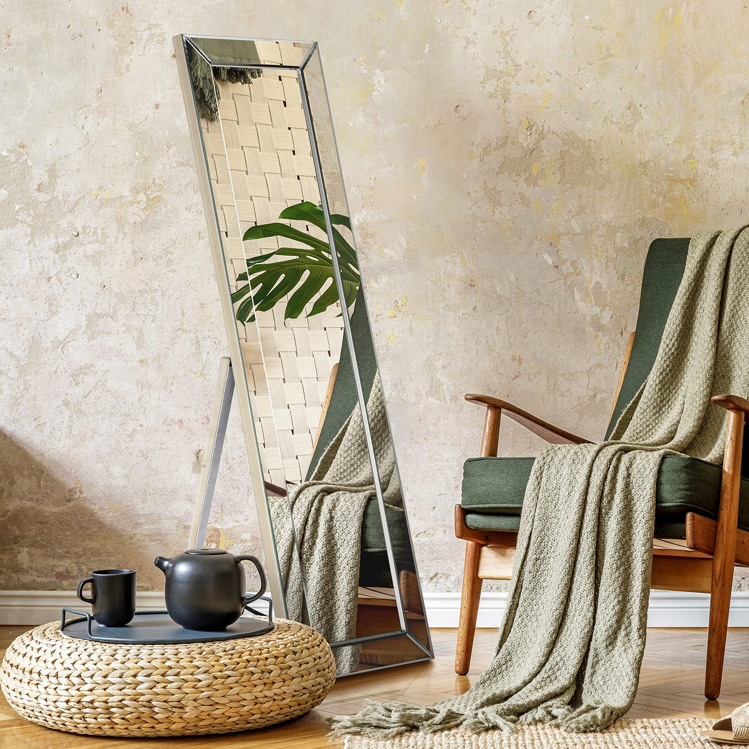 Empire Art Direct Moderno Cheval, Solid Wood Frame with 1"-Beveled Center Full Length Modern Mirror for Bathroom,Bedroom,Living Room,Ready to Stand on The Floor, 18" x 64", Clear