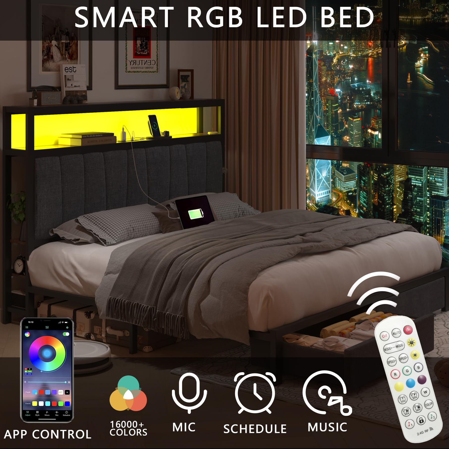 - COOL LED BED FRAME: This queen bed frame with LED lights offers over 60,000 colors, using the Phone app or controller, customize it freely
