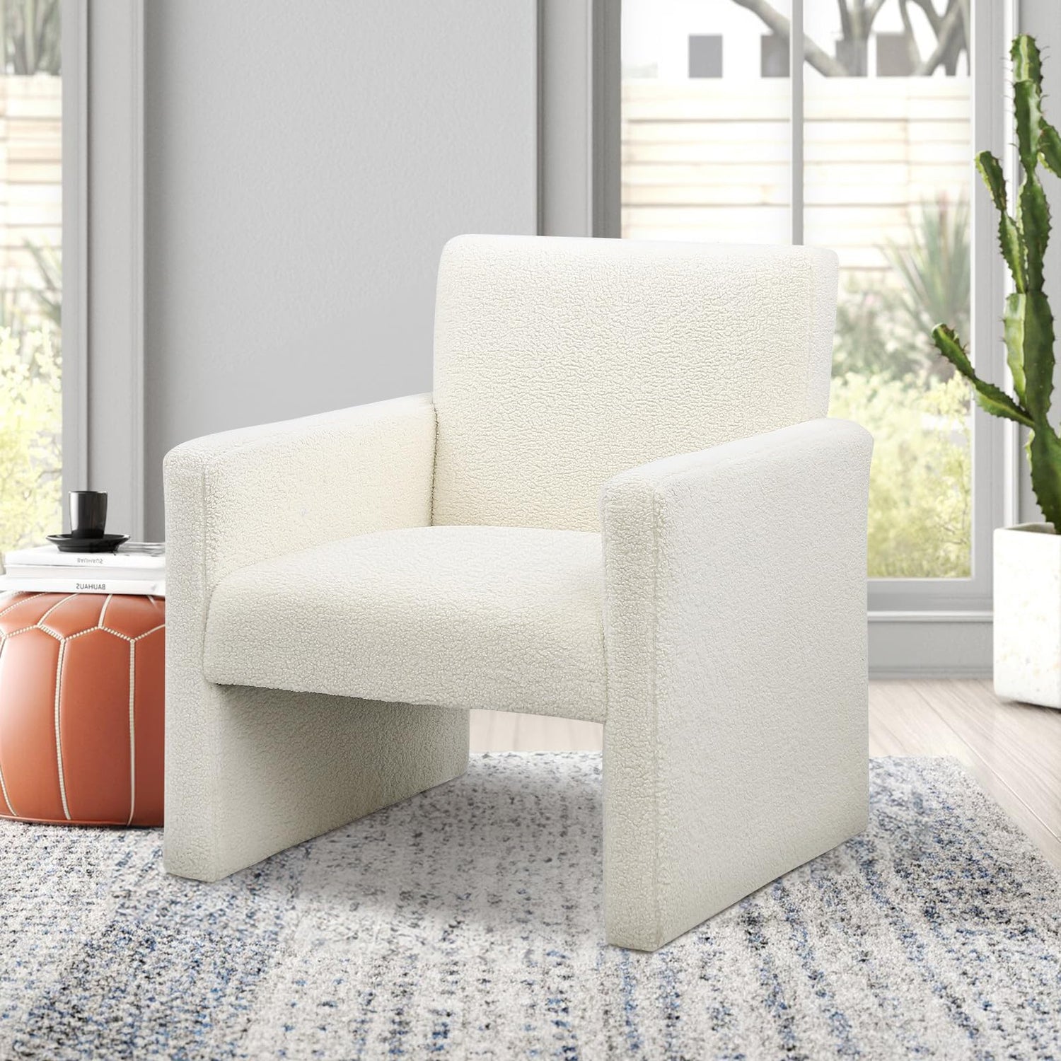 - Exquisite Living Room Chair: This sherpa accent chair features a white boucle fabric that adds a touch of luxury. With its clean lines and minimalist square design, this modern arm chair exudes an elegant and contemporary style. No matter the theme of your home decor, this bedroom chair will be enhance the beauty of your space