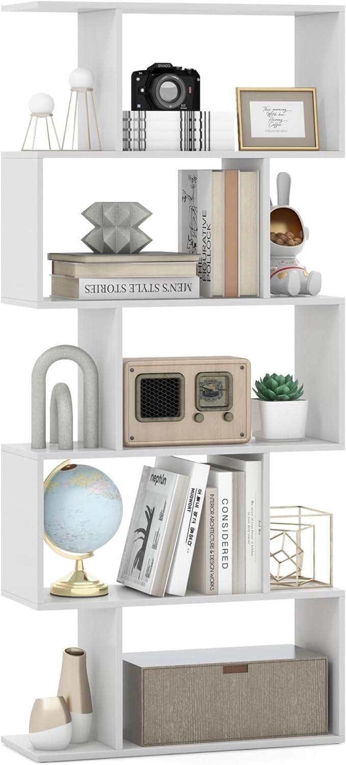 - The wooden storage shelf has large capacity to store books, photos, plants and more to bring you a tidy room. What’s more, the 5-tier design maximizes the available space.