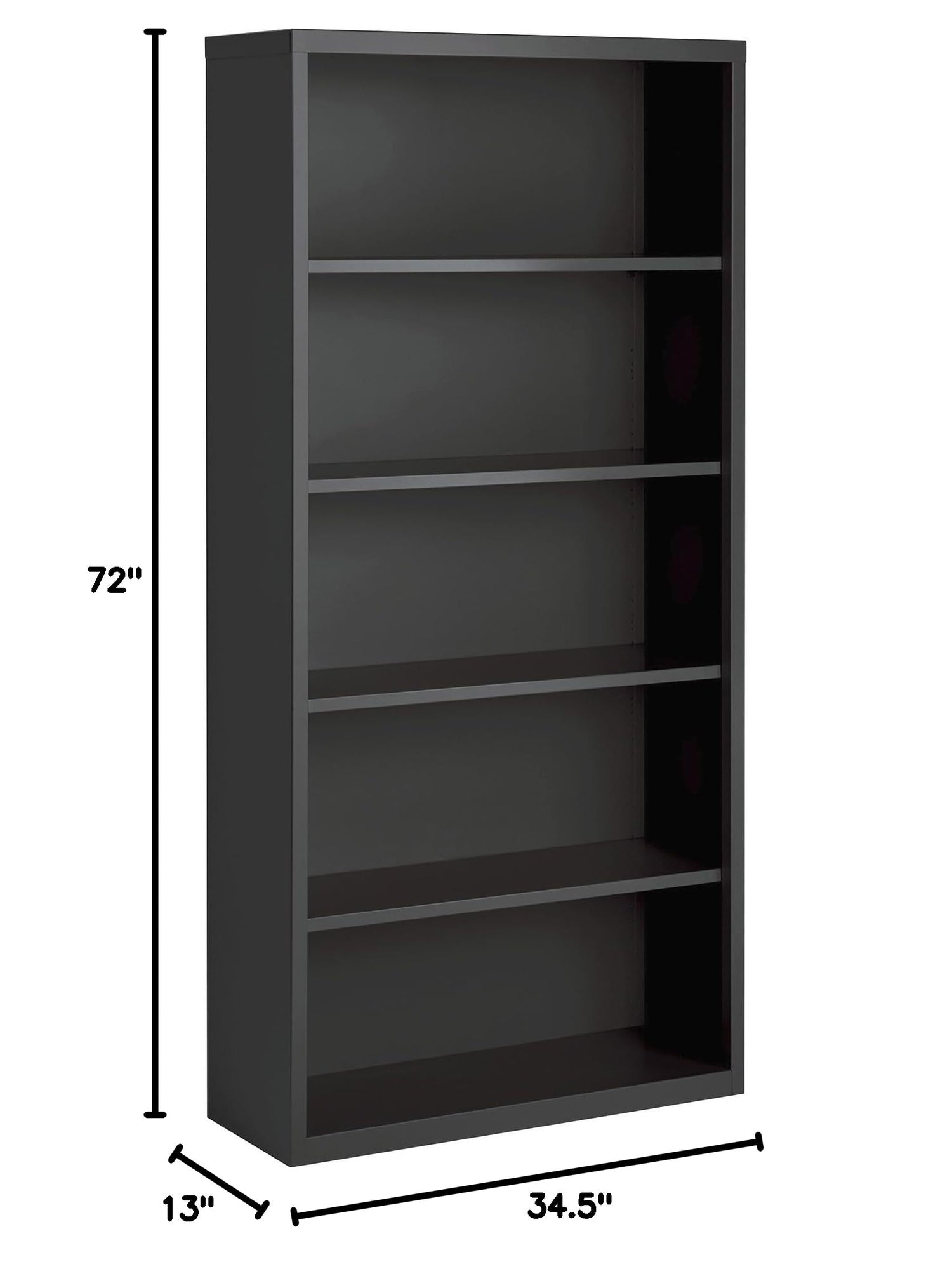 Details: Bookcase features fully adjustable shelves for flexible storage solutions. Shelves adjust in 1" Increments, and each offers a 200 lb. Capacity. The Bottom shelf is fixed. Welded steel construction offers a powder-coat finish for durability. Fortress bookcase meets or exceeds ANSI/BIFMA shelf standards.
