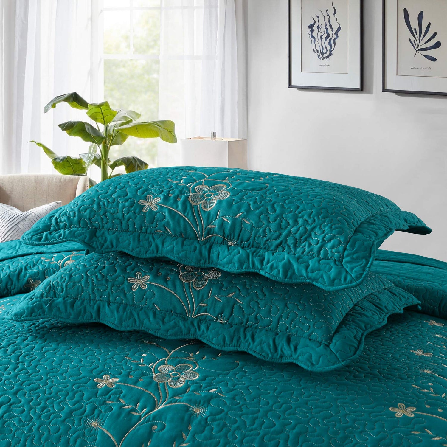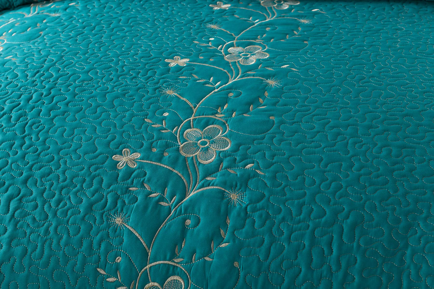 3 Piece Lightweight Bedspread Quilt Set Microfiber Quilt Embroidered Bedspreads Bed Coverlet Set, Lapaz (Teal, Queen)