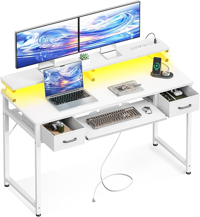 Gaming Desk with Led Lights and Power Outlet, 48 Inch Computer Desk with Drawers and Keyboard Tray, PC Desk with Monitor Stand, Work Desk for Home Office, Black - Black está agotado y se enviará tan pronto como vuelva a estar disponible.
