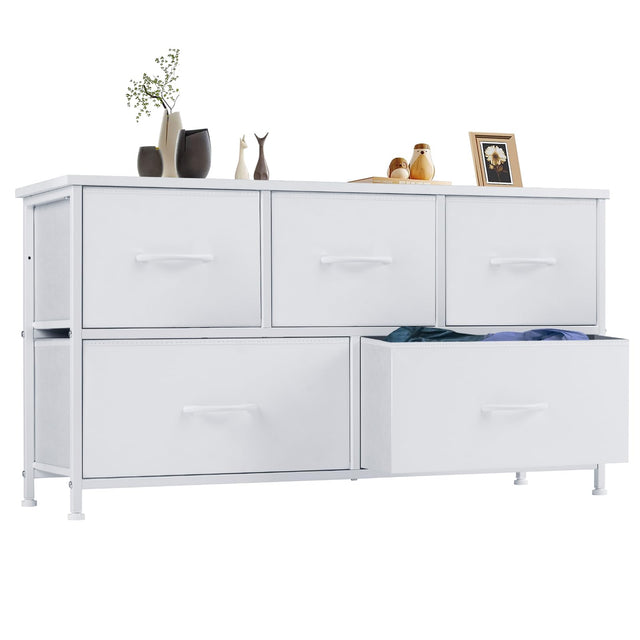 Dresser for Bedroom, Tall Dresser with 5 Drawers, Storage Tower with Fabric Bins,