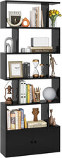 S Shaped Bookshelf with Cabinet, 6-Tier Bookcase with Doors, Freestanding Geometric Bookshelves for Living Room, Anti-toppling Device, Home Office Wood Storage Display Shelf (1, White) - Black / 1 está agotado y se enviará tan pronto como vuelva a estar disponible.