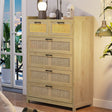 - The viagdo tall dresser is made of a combination of wooden frame and handmade rattan, which is moisture-proof and durable. The metal handle echoes the warmth of the rattan weave, and is full of weight, which makes the grip more comfortable and makes pushing and pulling easier and less labor-intensive. 4 thick wooden legs provide excellent stability and added weight support.