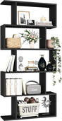 Geometric Bookcase, S Shaped Bookshelf 6-Tier Book Shelves for Bedroom, Modern Wood Decorative Display Shelf Tall Book Case for Home Office, Gold and White - Black / 5 Tier está agotado y se enviará tan pronto como vuelva a estar disponible.