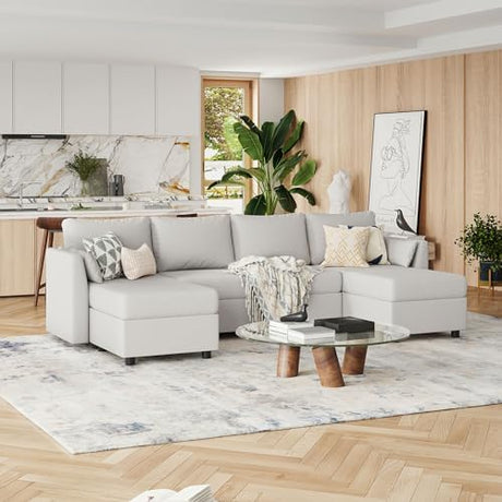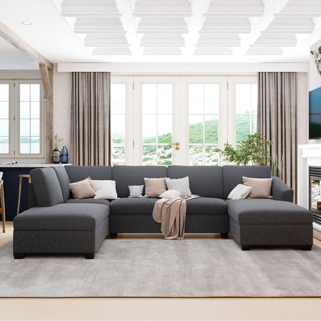 Shintenchi 110" U-Shaped Sectional Sofa with Double Chaise – 6 Colors