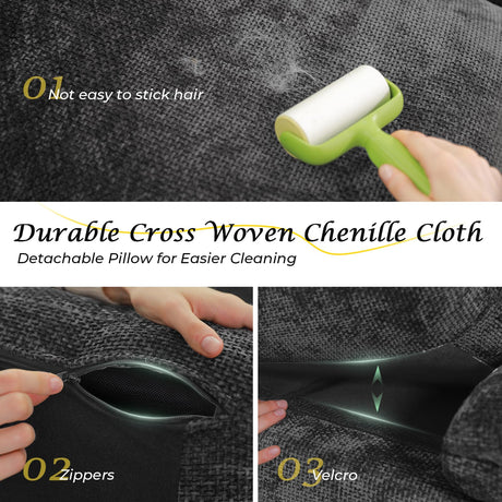 Abinger Chenille Contemporary Loveseat with 2 Accent Pillows, Dark Gray