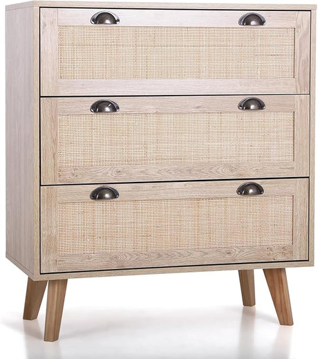 Rattan Cabinet Boho Dresser 3-Drawer Chest of Drawers/Accent Storage Cabinet/Nightstand