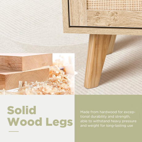 Modern Nightstand Rattan Side End Table with Storage, for Living Room, Bedroom and Small Spaces,
