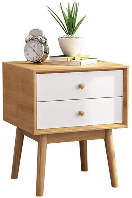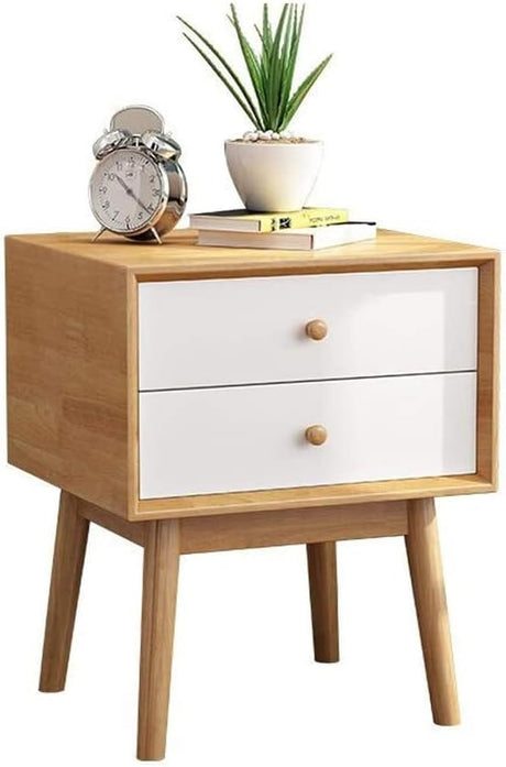 Mid Century Modern Nightstand, Walnut Oak Solid Wood Night Stand with 2 Drawers