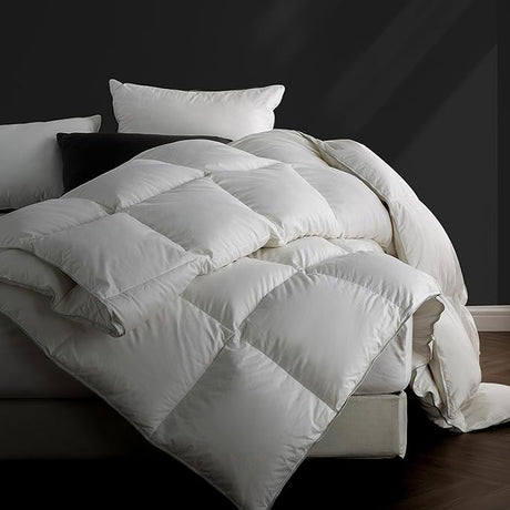 White Goose Feathers Down Comforter Queen Size, Premium All Season Duvet