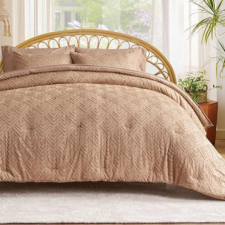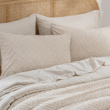 Boho Comforter Set King Size 7 Piece, Shabby Chic Tufted Comforter Set with Sheets