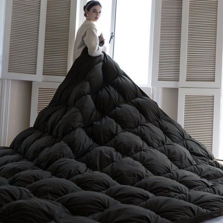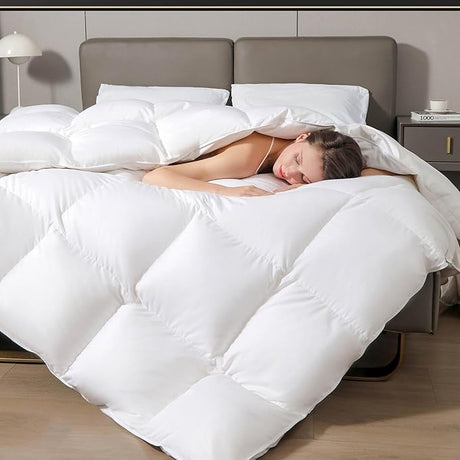 Pinch Pleat Goose Down Feathers Comforter Full/Queen Size All Season-Ultra Soft and Cozy Noiseless