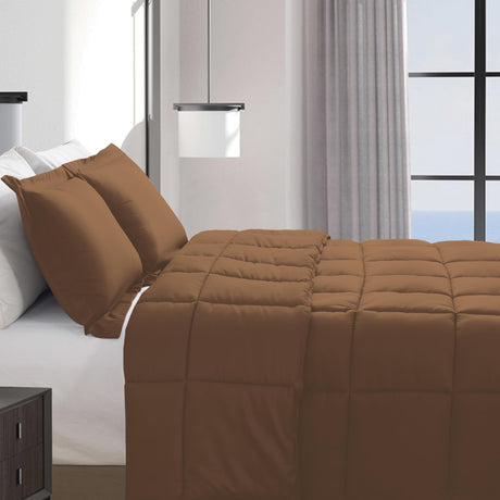 3-Piece Box Stitched Down Alternative Comforter with Shams - Ultra Soft for All Season