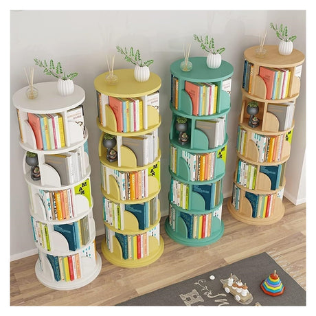 Bookcase Estantería para libros 360°Rotating Bookshelf Modern 2/3/4/5 Tier Wood Bookcase