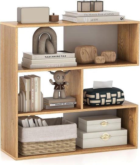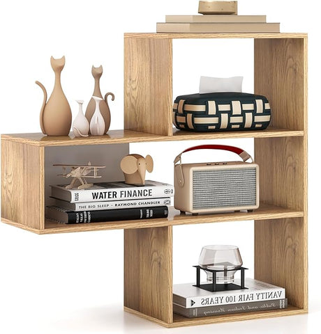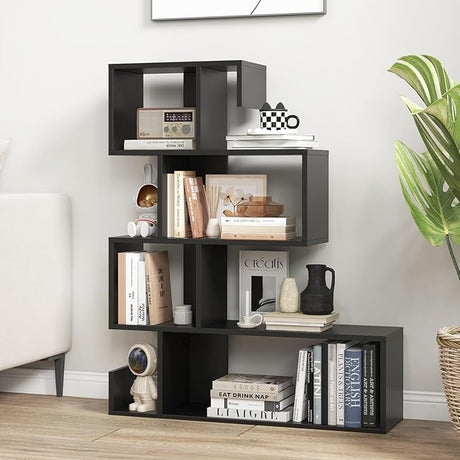S-Shaped Bookshelf, Geometric Bookcase with Open Shelves, 5 Tier Display Shelf, Modern