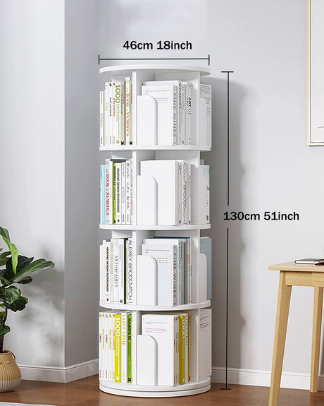 Rotating Bookshelf, 4 Tier 360° Revolving Bookcase Corner PVC Wood-Plastic Board