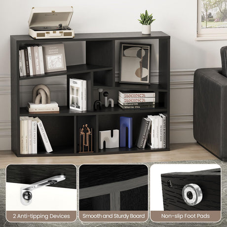6 Cubes Bookcase, 2-Piece Separable Floor Standing Open Horizontal Bookshelf