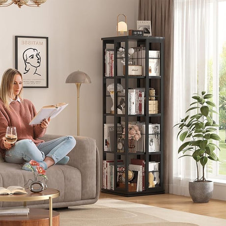 Rotating Bookshelf, 360 Display Wood Spinning Bookshelf Tower, 5 Tier Floor Standing