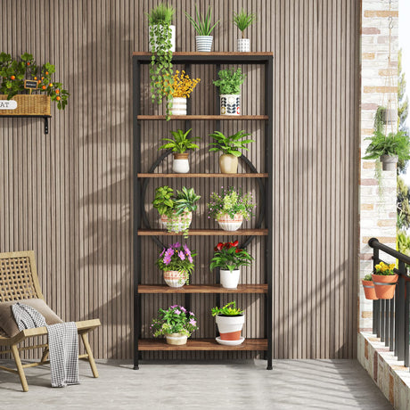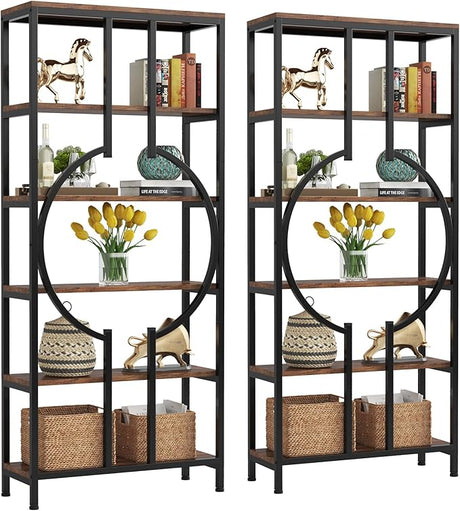70.9 Inch Industrial Bookshelf, 6-Tier Tall Etagere Bookcase with Open Shelves