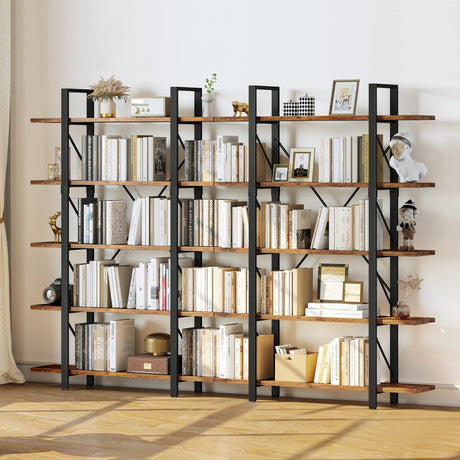 5 Tier Bookshelf, 70.9" Tall Industrial Bookcase, Wide Open Display Storage Book Shelf