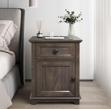 Aitjunz 25" Modern Nightstand with Charging Station & Storage Drawers