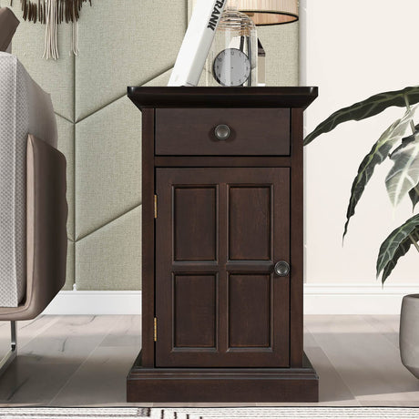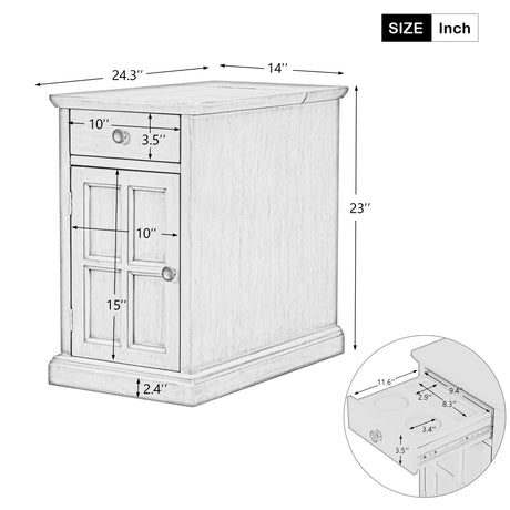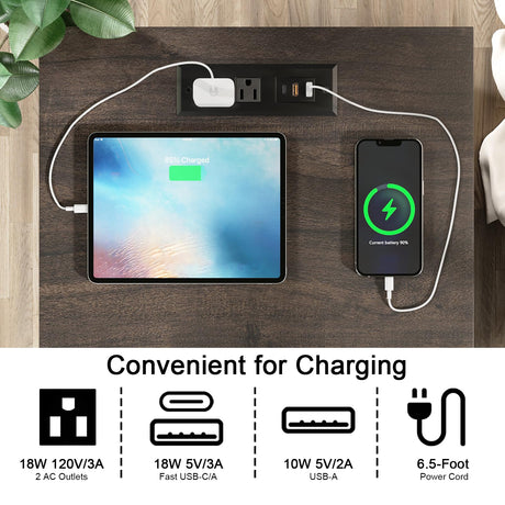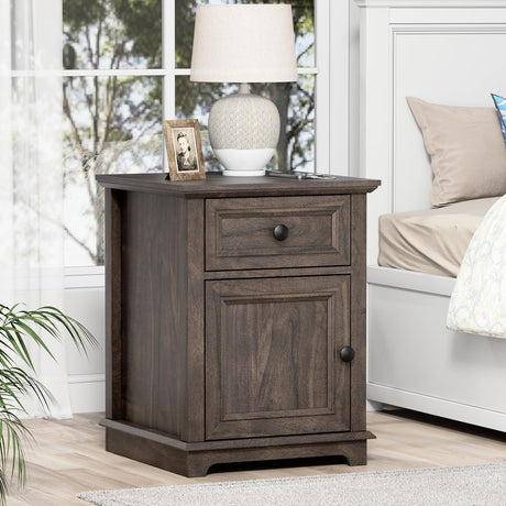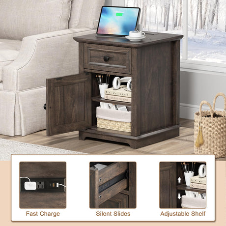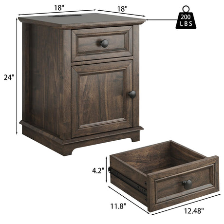 24'' Wood Mid Century Modern Night Stand with Charging Station, Drawers and Adjustable