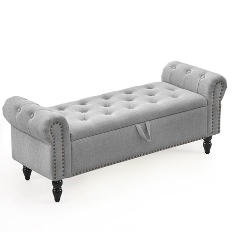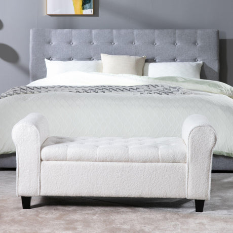 Storage Ottoman Bench for Queen Size Bed, Faux Linen Upholstered Storage Bench